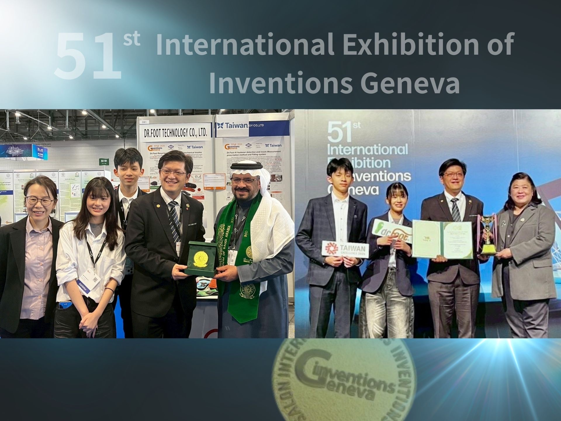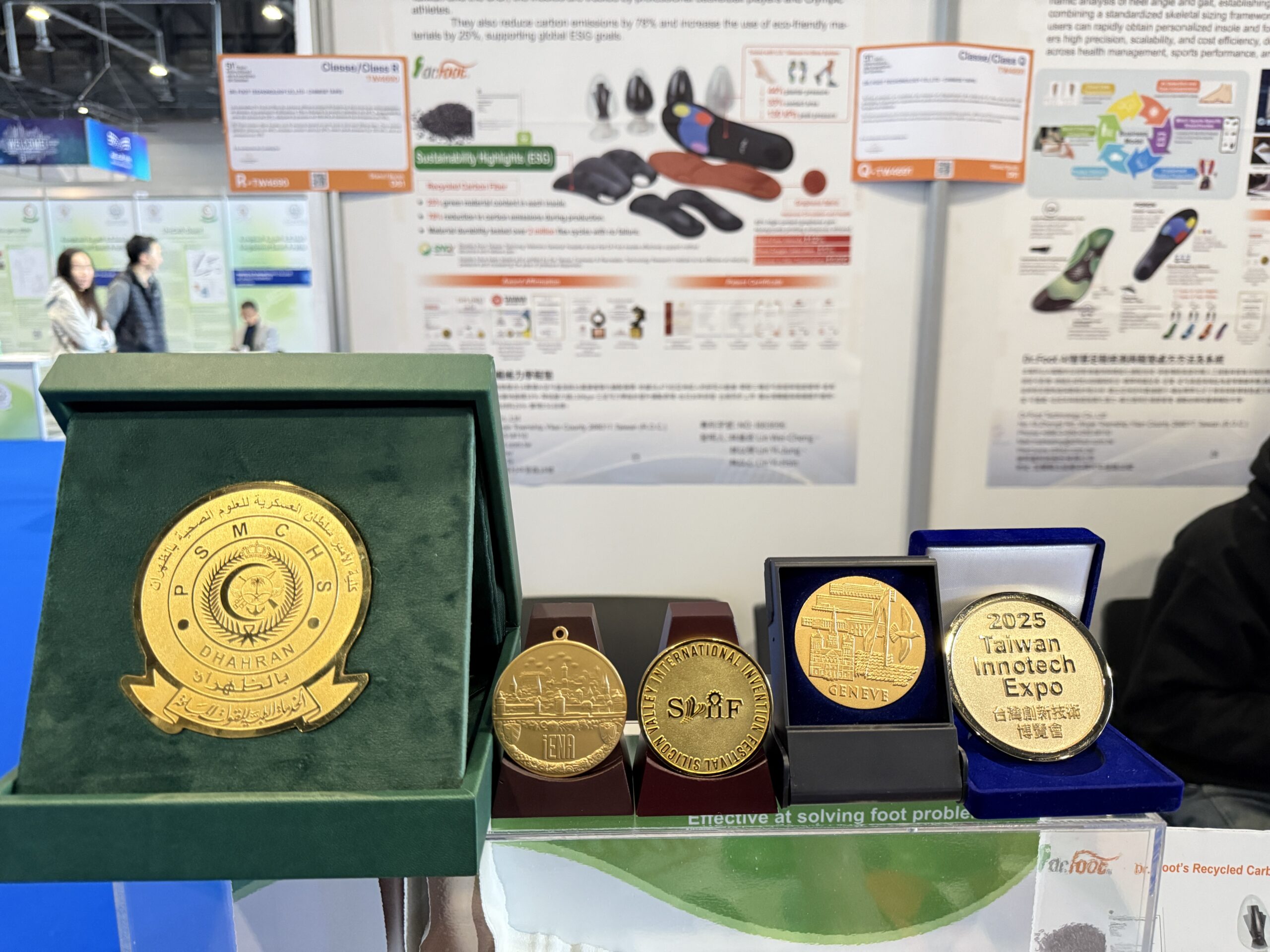 台灣足鞋健康科技品牌 Dr.Foot達特富科技 再度在國際舞台傳出捷報。於全球三大發明展之一的 第51屆瑞士日內瓦國際發明展 中,以「再生碳纖維訂製力學鞋墊」及「AI智慧足鞋檢測與鞋墊處方系統」兩項核心技術整合成果勇奪ㄧ金ㄧ銀,及泰國、阿拉伯兩國特別獎,並是唯一以Chinese Taipei上大會台領獎企業,展現台灣在智慧醫療與運動科技領域的創新實力。
