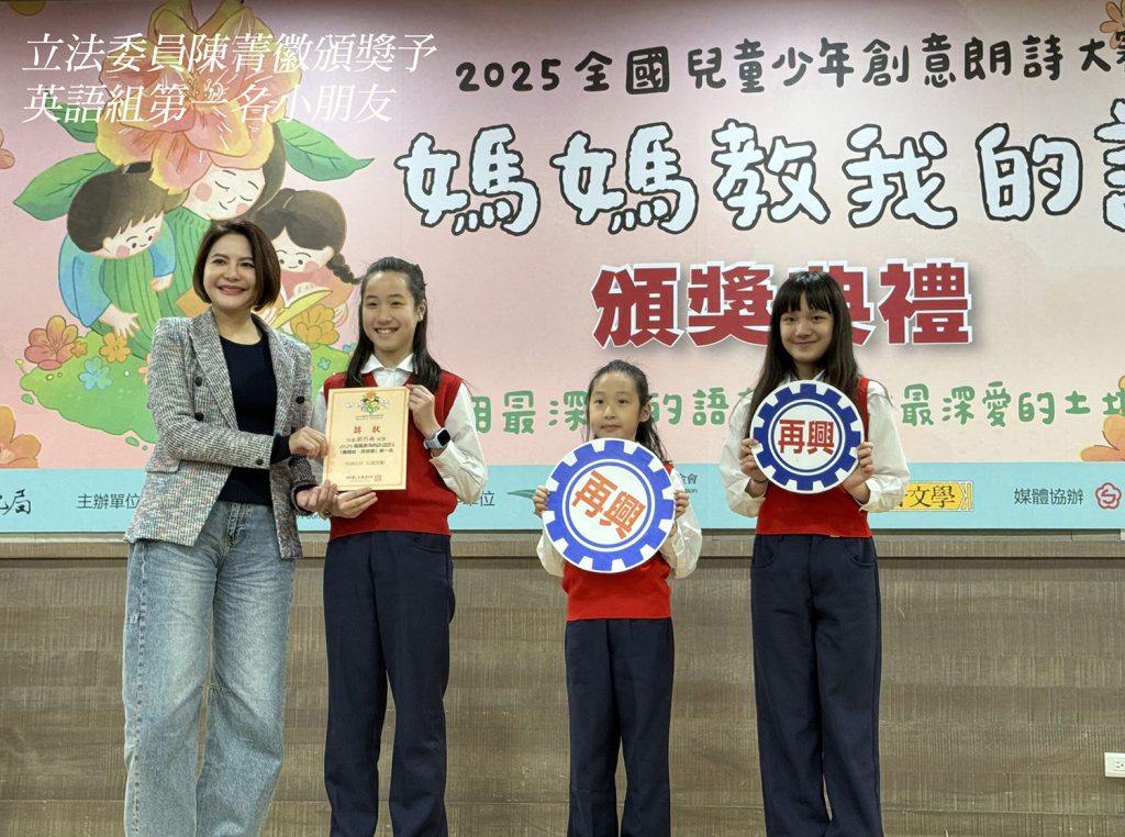 1999年由馬英九先生單獨捐助成立的〈財團法人新台灣人文教基金會〉,為推廣台灣母語,提昇學生使用母語能力,增進族群間之瞭解、尊重、包容而舉辦的「媽媽教我的詩」全國兒童創意朗詩大賽,至今已堂堂邁入第14年,不僅報名人數年年增長,優異的表現更年年精進,大大提升學生使用母語的能力與對母語詩歌的喜愛與認識。