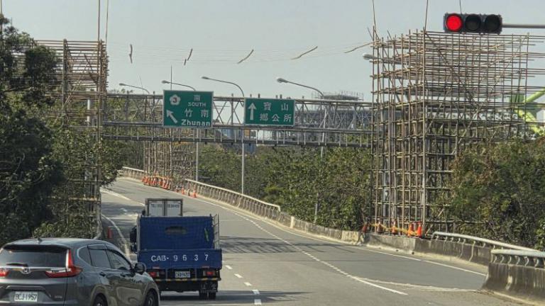 ▲台電公司擅自在寶山交流道兩側引道範圍內架設電纜新設架空線工程,嚴重踐踏行政程序。(圖/記者蔣彤雲攝)