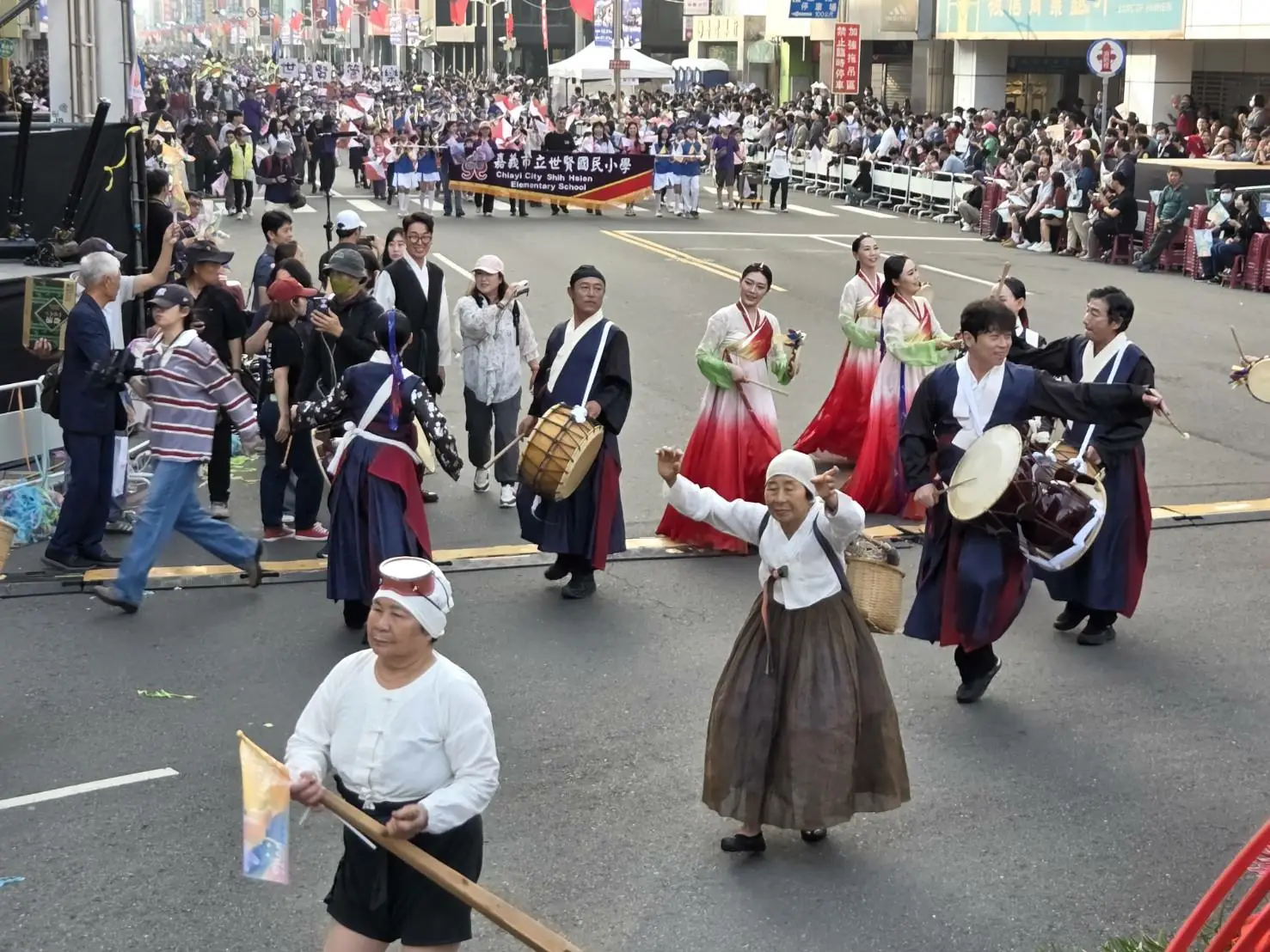 今年踩街嘉年華共7支國際團隊與48支國內團隊,由嘉義女中樂旗儀隊領軍揭開序幕,嘉義市多所國高中及大專院校團隊輪番上陣,學生們以自信活力的演出,展現嘉義長年推動音樂教育的成果。沿途街道擠滿觀賞民眾,掌聲與歡呼聲此起彼落。