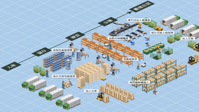 AI 驅動的倉儲機器人與自動揀貨系統,強化物流中心產能。圖來源/ATRI服科中心