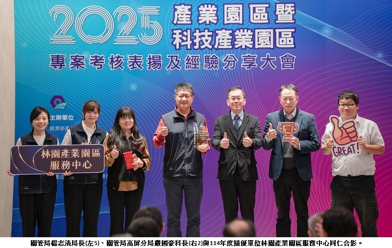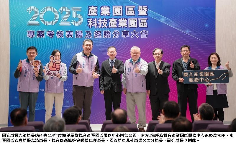 今年度考核由園管局自臺北、臺中、臺南與高屏四地分局轄區中,抽選8處園區服務中心進行評鑑。經由專業審查後,觀音產業園區服務中心與林園產業園區服務中心表現優異,脫穎而出,獲頒績優單位榮譽,並於現場分享其管理實務與服務成果,成為園區間相互觀摩學習的典範。