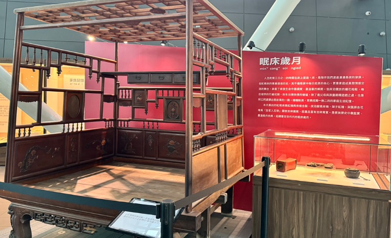 生活文化區域是觀展一大亮點。「眠床歲月」展出陳瑞祥、陳詹蘭妹家族捐贈的紅眠床,以及陽濟院老街發展協會捐贈的漆皮枕、繡花拖鞋等物件,重現客庄起居風貌;「灶下日常」則透過古紹宏、岸裡小學等單位捐贈的木製粄印、陶製糕印模與木工刨刀等器具,引領觀眾回到傳統廚房的手作時代。「家族風華」以黃南球家族後代黃卓權老師捐出的照片與證券,展現家族世代的軌跡;「家族記憶」則以羅喜蘭女士捐贈的土地契約呈現家族傳承故事。「高樹群像」展出曾彩金老師捐贈的文史資料,記錄地方人物群像;「牧耕・風土」則以灌牛管、藥碾子、鏟子、抽油器到茶葉甕、青花盤等器物,展現客家族群與土地共生的生活智慧。