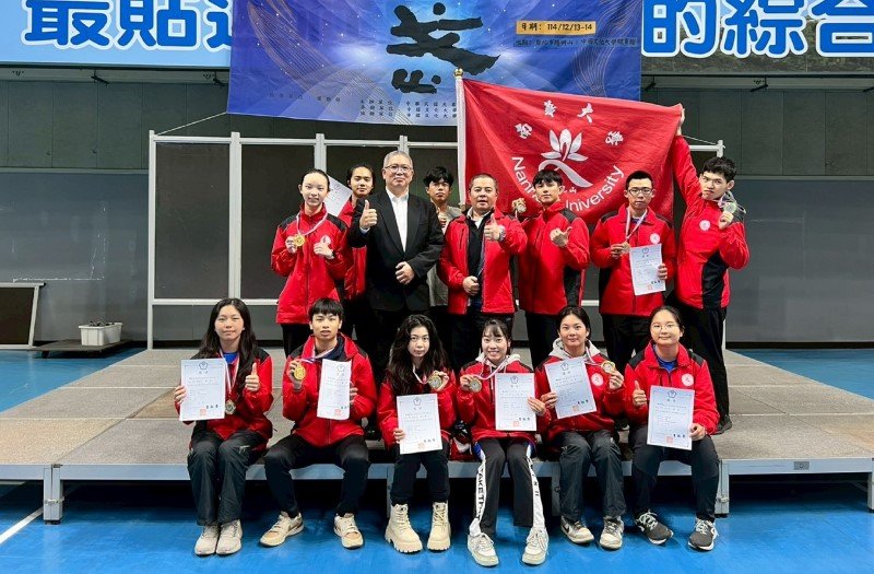 波新聞─辜士陞/嘉義南華大學國武術隊於 12 月 13 至 14 日參加「114 學年度全國大專校院國術錦標賽」,七位選手在全國賽事以穩定的實力,展現精湛武藝再創佳績,合力摘下九面金牌,為校爭光。「114 學年度全國大專校院國術錦標賽」南華大學國武術隊一舉拿下九面金牌,分別為運動與健康促進學士學位學程四年級王品超(公開男子組北拳第二類、劍術)、運動與健康促進學士學位學程四年級謝柏毅(公開男子組其他器械)、視覺藝術與設計學系五年級陳郁靜(公開女子組南拳第一類、長兵器)、運動與健康促進學士學位學程二年級郭家彤(公開女子組刀術)、廖思晴(公開女子組劍術)、資訊工程學系三年級紀嘉欣(一般女子組北拳第二類)、運動與健康促進學士學位學程三年級賴盈臻(公開女子組散打 56 公斤級),選手們於多項目及跨組別賽事中,充分展現整體競技水準。南華大學體育與運動發展處處長何應志指出,國武術隊成立於 103 學年度,禮聘國家級教練鄭旭龍指導,創隊初期僅有一名隊員,首度參賽即奪下公開組金牌,寫下校史首金,並奠定隊伍發展基礎。隨著成員擴編與訓練制度成熟,持續在全國賽事中展露頭角,自成立以來,已累計奪下至少 55 面金牌,其中 111學年度單屆勇奪11金為最高紀錄,本屆斬獲9面金牌,成績斐然,,持續展現穩定競爭力。南華大學校長高俊雄表示,非常感謝國武術隊兩位教練鄭旭龍與鄭王林長期以來對選手的悉心指導,除了精湛的武藝,重視培養選手的品格、紀律與團隊精神。高俊雄校長也提到,選手體能維持與運動傷害防護至關重要,此次特別請體育運動發展處安排校內運動與健康促進學士學位學程運動傷害防護專長的老師率學生團隊隨隊服務,以助於選手身體狀況能保持最佳狀態,迎戰賽事,發揮極致也為校爭光。近年來,校內各運動代表隊在各類體育賽事中屢創佳績、表現穩定,不僅展現卓越的運動實力與培育成果,更具體實踐創辦人星雲大師「以體育弘法」的辦學理念,彰顯以運動涵養品格、以教育回饋社會的核心價值。未來將持續整合教學與運動資源,以支持教練與選手穩健發展,以培育更多優秀體育人才。