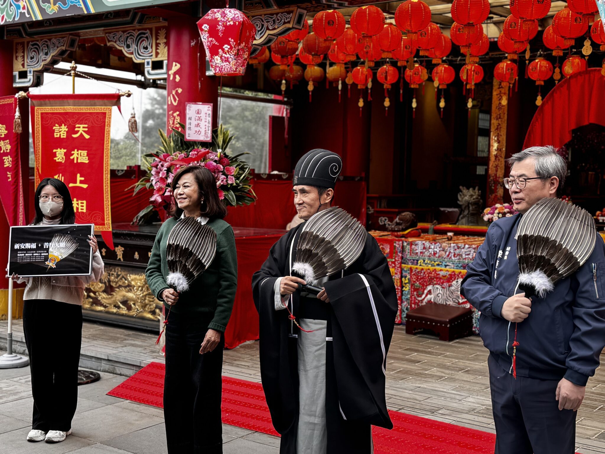 天樞上相諸葛孔明聖尊去(113)年1月6日駐駕七堵慶濟宮,今(4)日出巡移駕台北木柵指南宮,基隆市副市長邱佩琳親自出席此次宗教文化交流,並與指南宮管理團隊以及副議長楊秀玉及慶濟宮主委柯金標等人共同為國運、市政祈福,臺北市政府亦由秘書長李泰興率隊出席,現場氣氛溫馨隆重。
