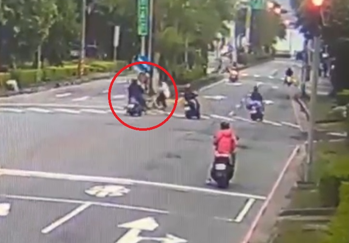 婦人騎Ubike上行人穿越道(紅圈處)被機車撞擊倒地。翻攝畫面