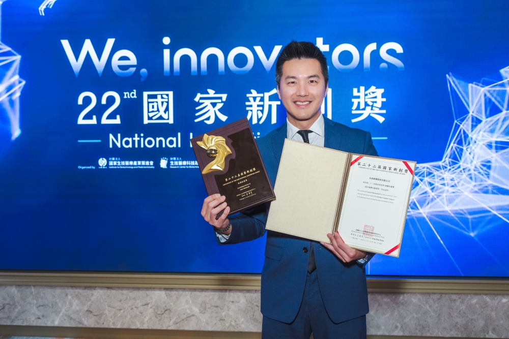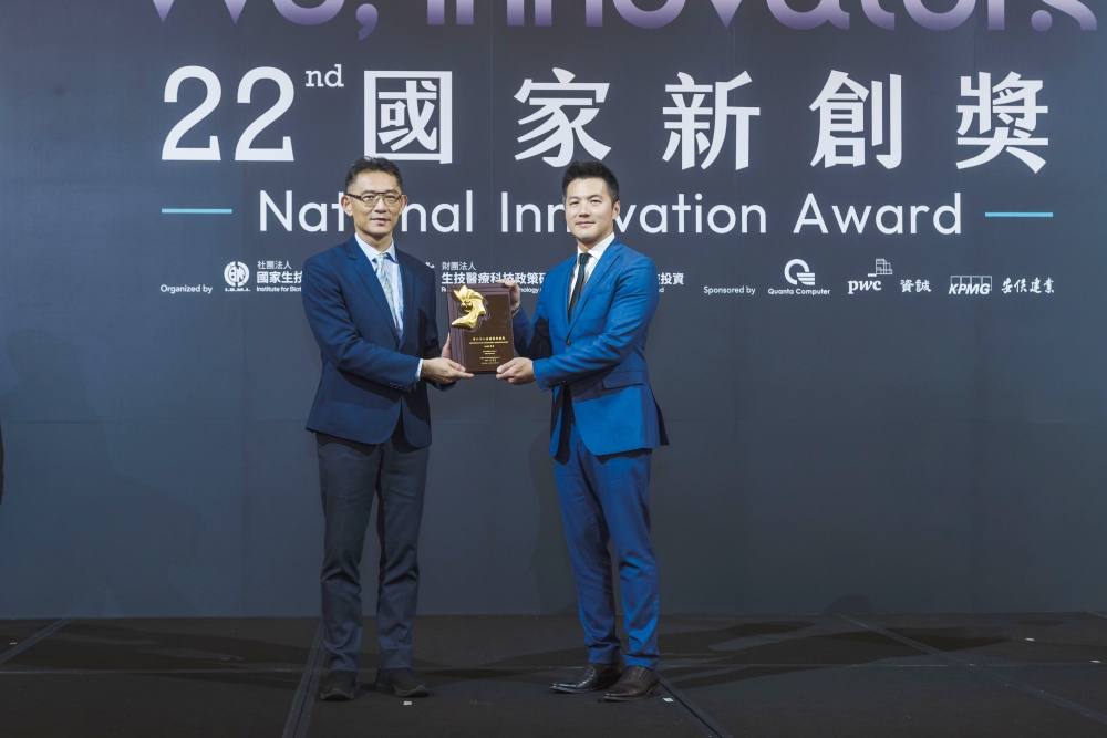 圖▲未來新藥憑藉突破性的醫藥研發成果,榮獲第22屆「國家新創獎」,由未來新藥創辦人招名威博士(右)代表領獎。