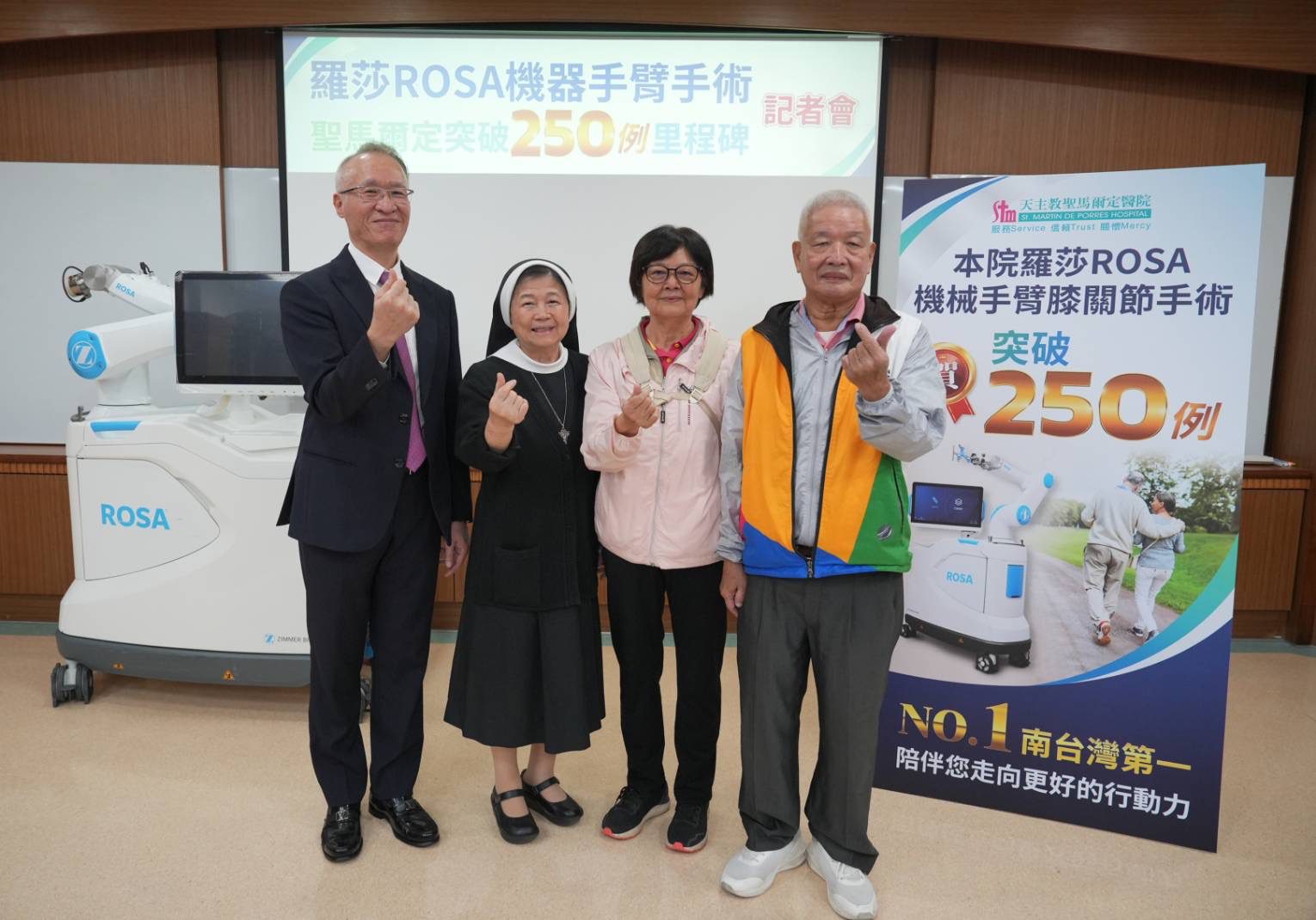 聖馬爾定醫院自2018年於院內完成首例MAKO半膝人工關節置換術,迄今已七年,院方於2023年引進 ROSA 機械手臂系統,應用於全人工膝關節置換手術,現已累積超過250例,創下南台灣各級醫院中最多手術量的亮眼紀錄。23日特舉辦「機械手臂系統關節置換 突破250例」記者會,不僅象徵醫療技術的全面升級,也為退化性關節炎患者提供了新的治療希望。