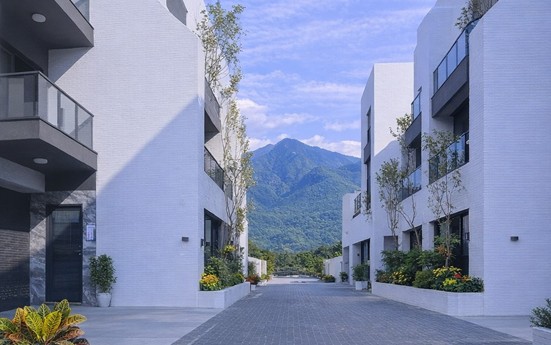 基地面向大武山脈,層層山巒隨日照與季節變化呈現不同層次。日出、月升近在窗前,居者坐於室內即可感受天地流轉。各戶前庭田園的規劃,亦吸引蝴蝶棲息、綠意盎然,使自然景觀從遠山延伸至生活日常。