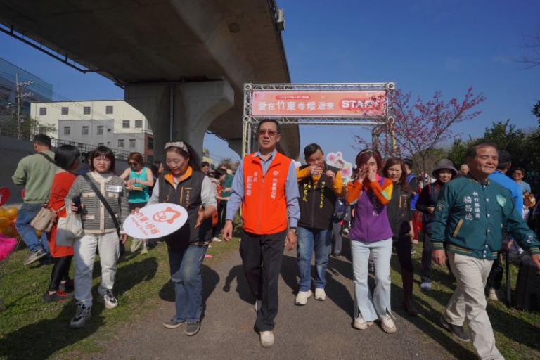 竹東鎮公所辦理「115 年度竹東親子健行賞櫻趣」14(六) 日於竹東頭前溪河濱生態公園圓滿落幕,活動當日吸引大批民眾熱情參與,攜家帶眷走入盛開的櫻花大道,共享專屬竹東的春日浪漫時光。