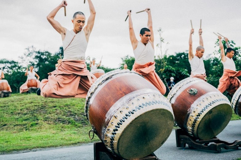 後來,劉若瑀認識了「阿襌師父」黃誌群,將他擅長打鼓並從印度學習「打坐」的經驗,加入優人的身體表演訓練。於是,「優人神鼓」誕生了,「先打坐,再打鼓」的口號,說明這個表演團體的核心,不只是擊鼓,更是一種修行的實踐。鼓聲,在這裡不再只是節奏或聲響,而是一種呼吸、一種心念的外化。每一下擊打,都是對當下的覺察;每一段節奏,都是對內在秩序的重整。