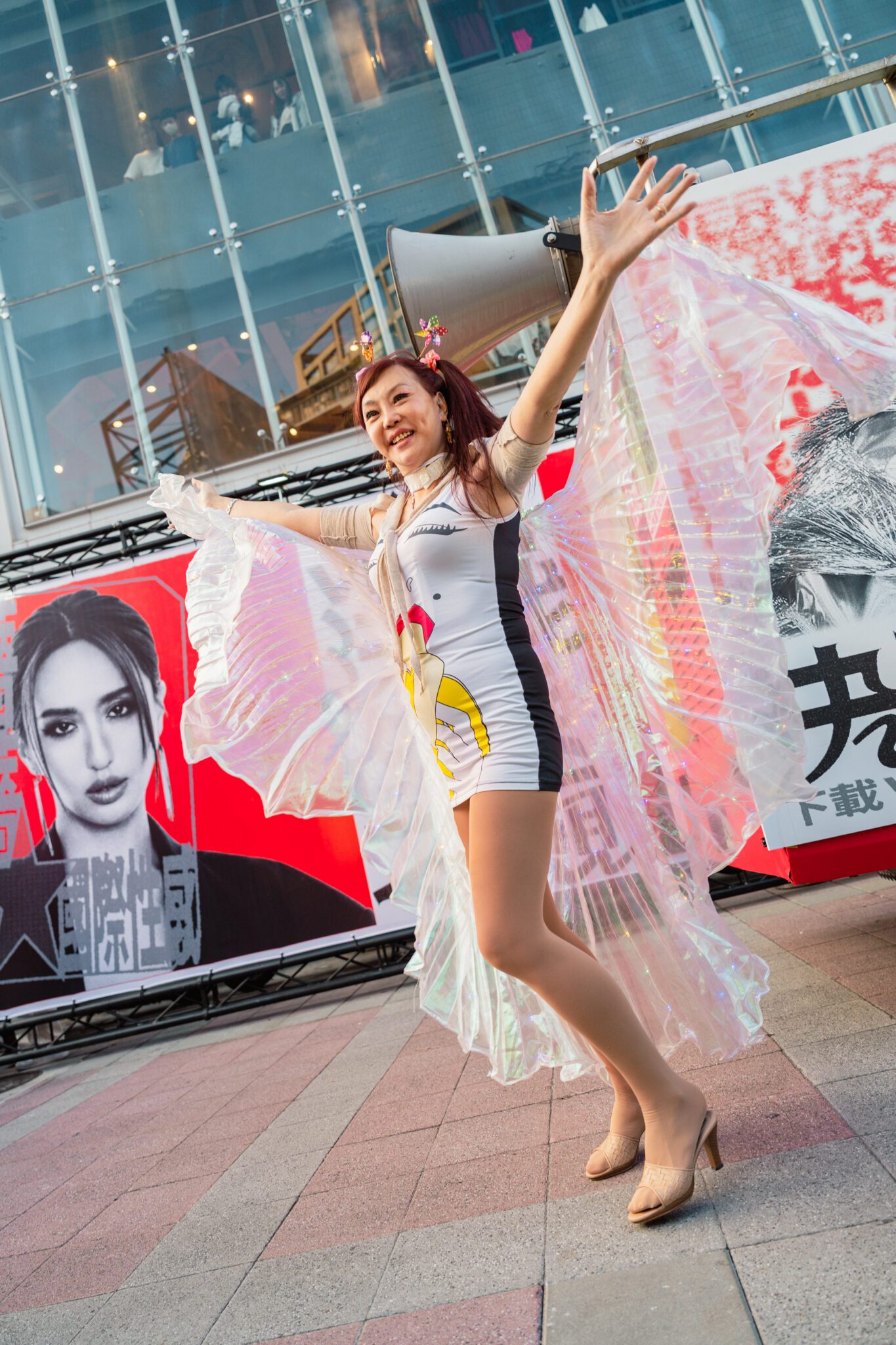 薔薔則走完全不同路線,她坐著協力車、再下車步行與粉絲握手、擊掌,還在原地示範性感姿勢,一邊笑說:「阿姨我不想努力了,我想選性感代表!」瞬間又把笑點拉滿,粉絲圍得水洩不通。