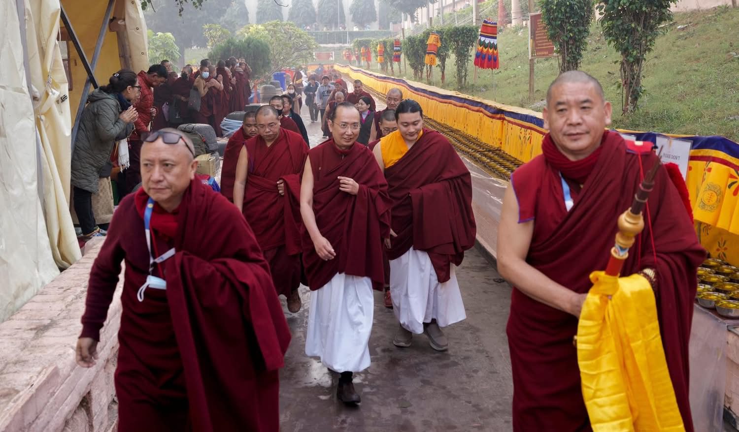 清晨時分,尊貴的第42任薩迦法王,親自帶領法王子無變金剛、傑尊瑪仁波切,以及堪布、僧眾,前往正覺塔內供養。