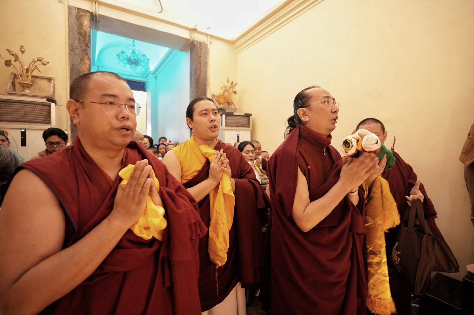 隨後,一行人移步菩提樹下,恭誦《隨念三寶經》、《長壽三尊法會》、《藥師佛法會》與《眾生安樂頌》。午後,再以《普賢行願品》作總回向——將一切功德,回向諸位具德上師法體康泰,佛行事業廣大圓滿。