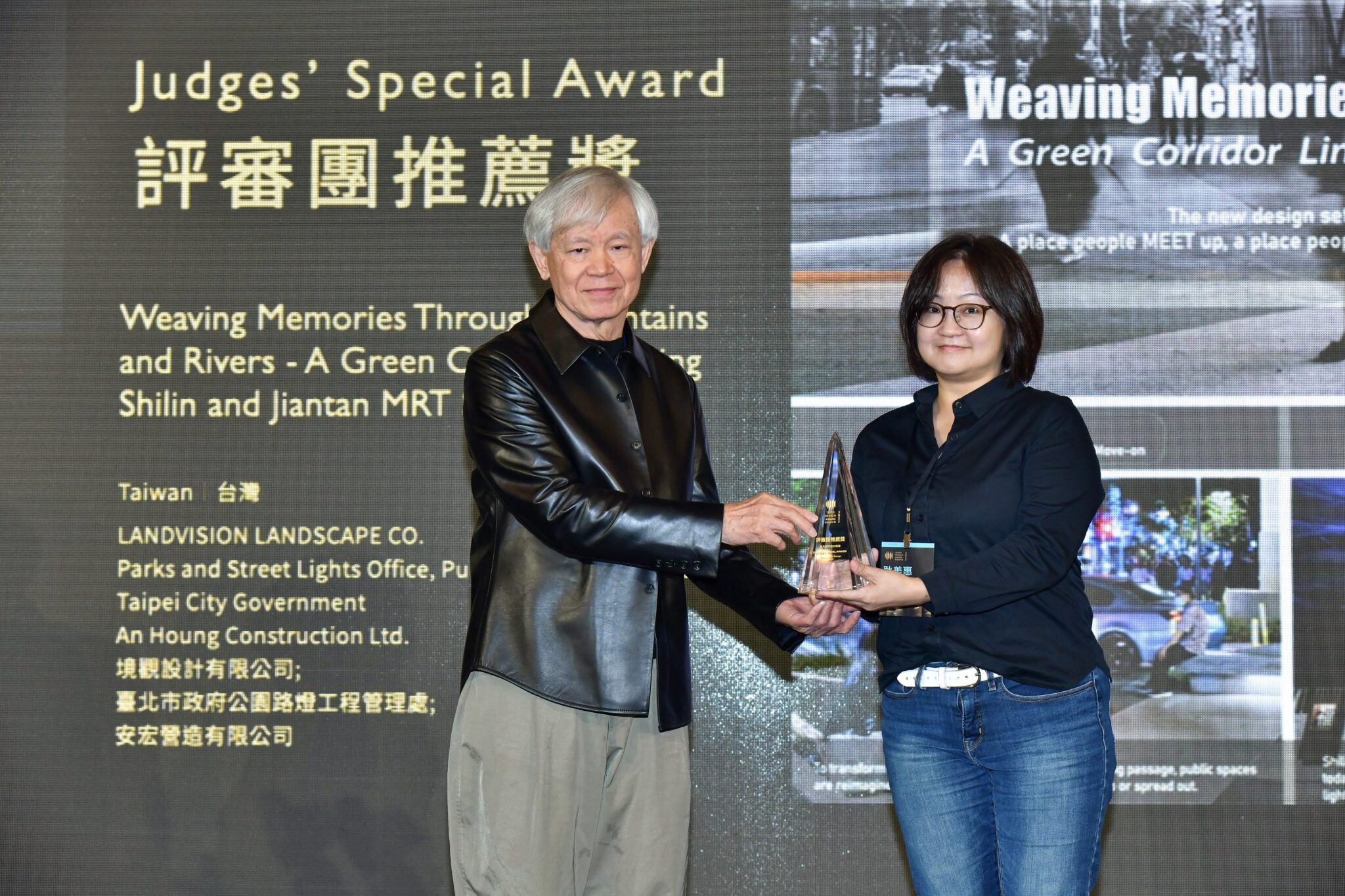 「捷運綠廊串連人行動線(士林-劍潭站)更新工程」榮獲評審團推薦獎(Judges’Special Award),成為本屆城市公共空間類最受矚目的亮點之一。