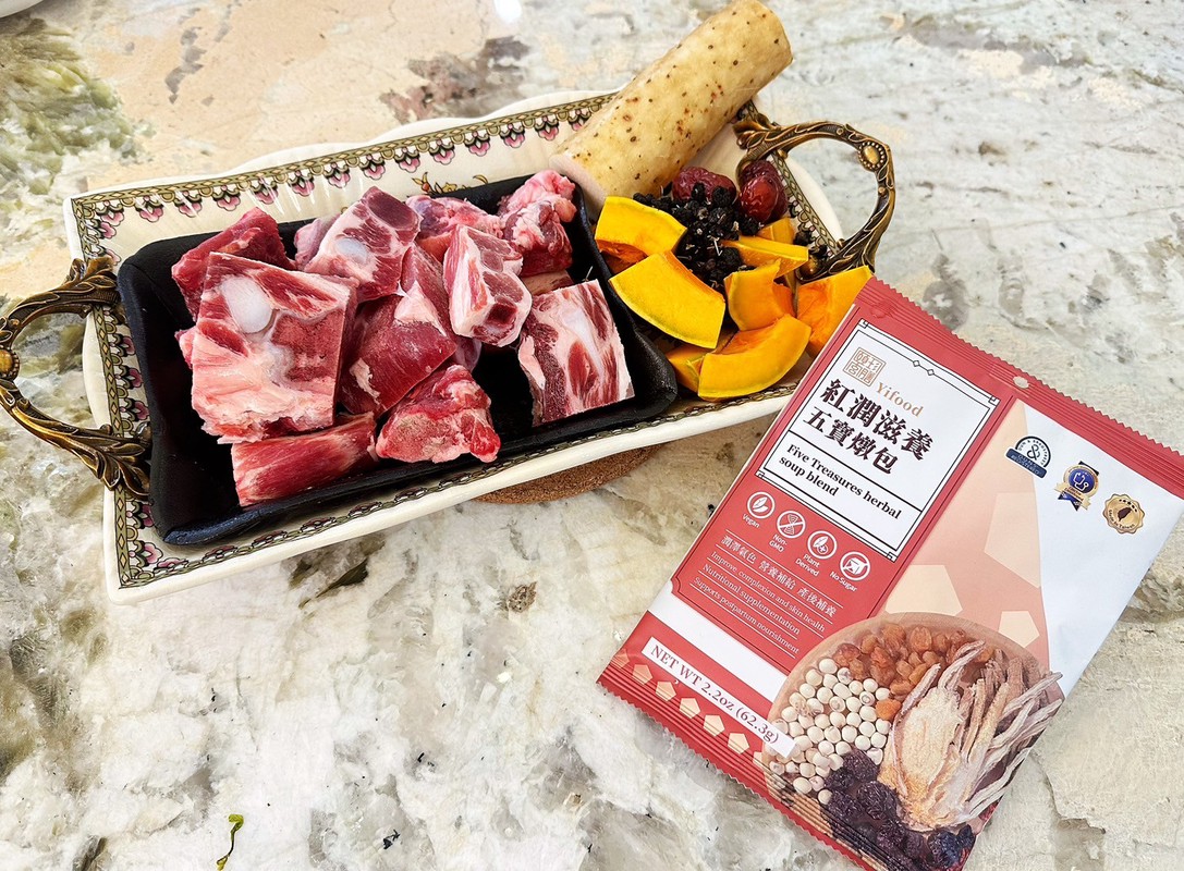 「豬排骨入湯,寓意諸事順心、家運富足。」五寶紅潤滋養燉包主打養顏美容與元氣補養,是年節期間最適合全家共享的一款。