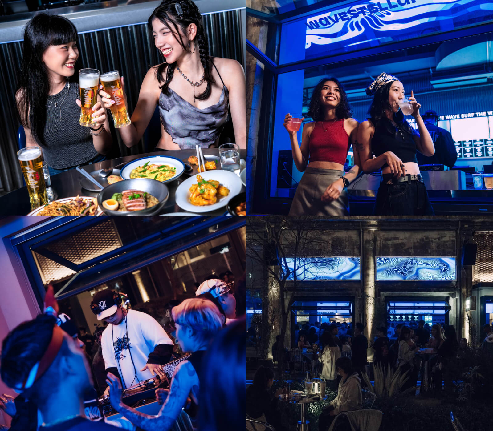 永心鳳茶最新品牌「浪際 WAVESTELLAR」定位是新台式海鮮雞尾餐酒館,早咖晚食夜酒的新型態空間,成為高雄潮流新據點!店內超大型電子螢幕,畫面隨著DJ播放音樂的聲波節奏跳動,呈現截然不同風格。浪際全日提供各種咖啡和調酒的選擇。由淡至濃的9款汲飲式雞尾酒、3款無酒精調飲與3款啤酒,汲飲吧台採用觸發動態,螢幕會出現幻彩繽紛的視覺效果。餐點部分以台式小吃為靈感,選用豐富的當季海產加上西式調味,變化出新穎的風味料理,整體潮流酷炫的風格,吸引許多顧客前往消費。
