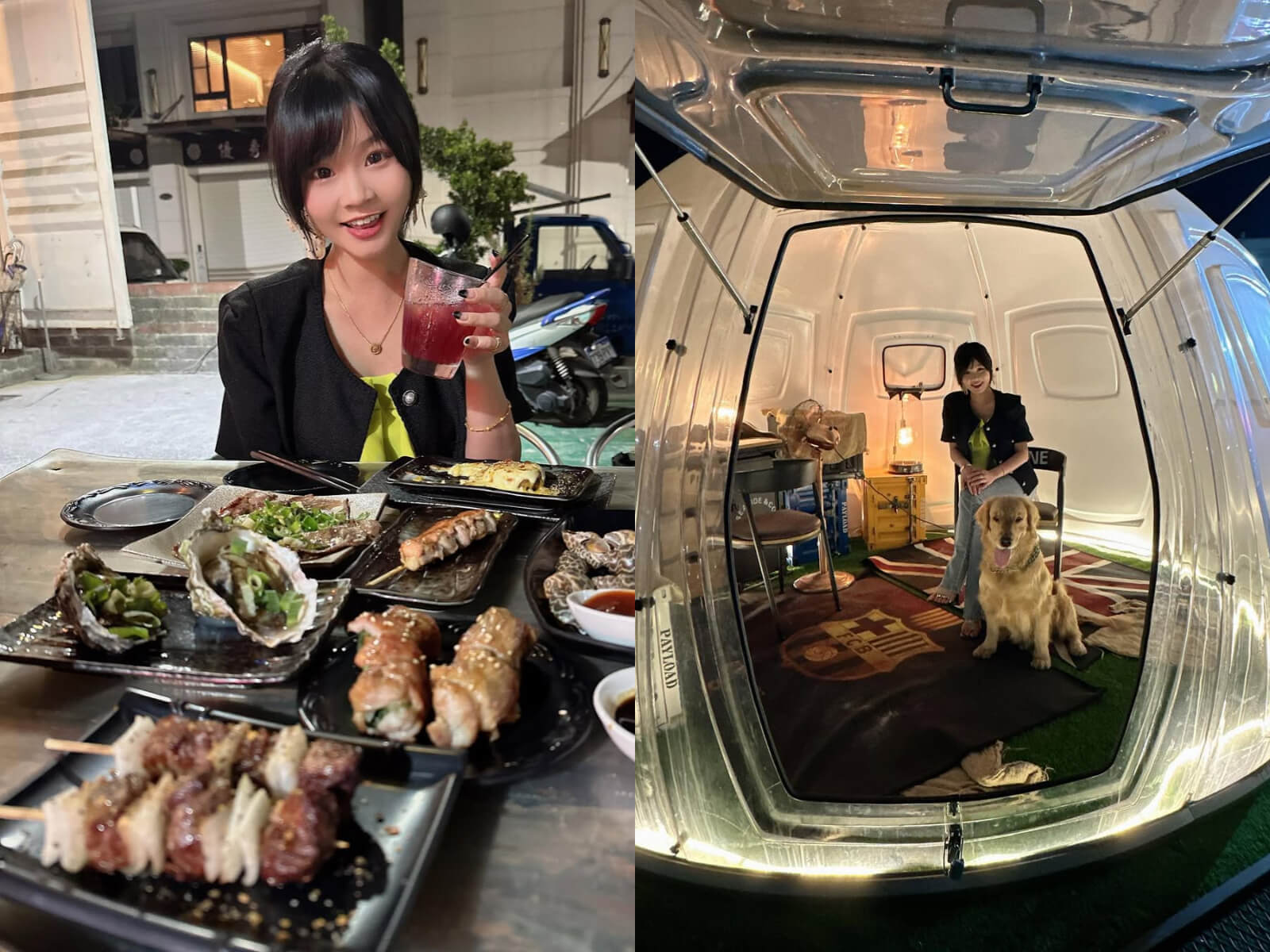 由白色貨櫃組成的喝郎燒烤Bar,交通方便,離捷運站近,輕鬆自在的美式風格,很多人相約看球賽和聚餐的地方。料理以燒烤和熱炒料理為主,還有各式炸物、鍋類,各式酒類、調酒選擇也非常多。店內有超大螢幕隨時都播放著球類賽事,角落設有電子飛鏢機,門口有超好拍的圓形太空艙帳篷,還是寵物友善店家,超適合在演唱會嗨翻後吃宵夜的樂迷們或好友聚餐喝酒同樂。