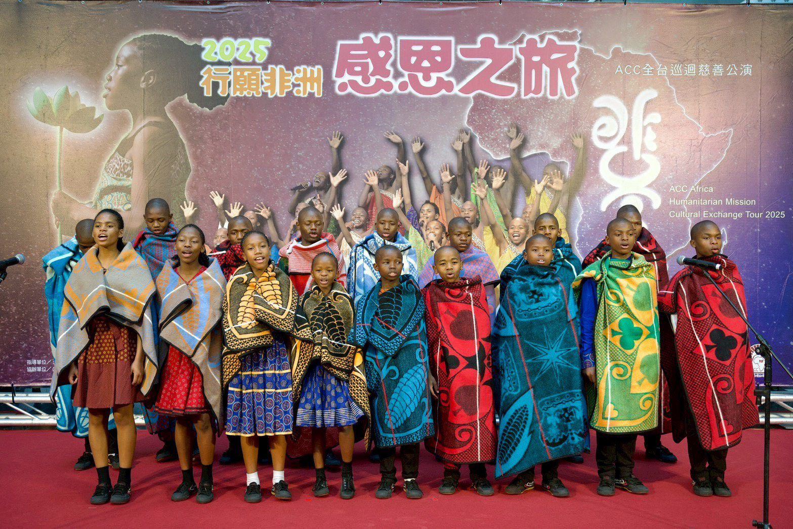 在非洲救助逾2萬名孩童的阿彌陀佛關懷中心(Amitofo Care Centre,ACC)將於明年1月2日,在台中中山堂推出「行願非洲.感恩之旅」慈善巡演。今(10)日於市府舉辦宣傳記者會,來自賴索托的26名院童以歌舞、鼓樂與燦爛笑容揭開序幕,純真而深刻的能量打動在場所有人,副秘書長張大春與貴賓們齊為孩子們的精彩演出熱烈鼓掌,並預祝巡演圓滿成功。