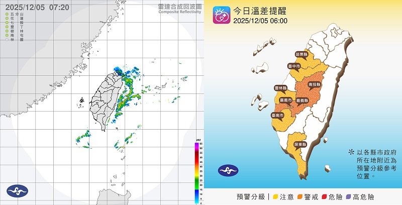 波新聞─鄭學而/台北週五持續受東北季風影響,桃園以北、東半部地區及恆春半島雲量較多,偶有零星降雨;各地早晚低溫普遍16到18度,局部空曠地區及近山區平地溫度會再更低一些,外出注意增添衣物及保暖。中央氣象署預報,週五桃園以北、東半部地區及恆春半島雲量較多,偶有零星降雨,主要在基隆北海岸、大台北山區及宜蘭地區降雨較持續,為陰雨的天氣,而其他地區為多雲到晴、可見陽光。另外,東北風偏強,桃園至台南、台東沿海地區、恆春半島及蘭嶼綠島、澎湖、馬祖有平均風6級以上或陣風8級以上發生的機率,海邊活動請多加留意。氣溫方面,週五各地早晚低溫普遍16到18度,局部空曠地區及近山區平地溫度會再更低一些,而白天北部及宜花高溫為20、21度,中南部及台東高溫則為24到26度,感受上仍稍涼,外出請增添衣物注意保暖。離島澎湖晴時多雲,19度到21度;金門晴時多雲,14度到20度;馬祖晴時多雲,14度到16度。天氣風險公司指出,週六大環境由東北風漸轉偏東風,迎風面北海岸、東北角及東半部多雲偶短暫陣雨,大台北轉多雲時晴天氣,其餘各地晴到多雲。週日天氣進一步轉好,東半部也有陽光露臉機會,降雨也較零星。週六、曰氣溫逐步回升,白天舒適有暖意,但夜晚清晨氣溫低感受較冷,西半部注意10度左右溫差。下週一有另一波東北季風南下,水氣增多,北、東再次轉陰雨,氣溫下降,新竹以南晴到多雲。紫外線指數方面,週五基隆市、台北市、新北市與宜蘭縣為低量級,其他縣市達中量級。空氣品質方面,週五受東北季風影響,環境風場為東北風,中南部位於下風處,污染物易累積;竹苗、宜蘭、花東空品區為「良好」等級;北部、中部、雲嘉南空品區及馬祖、金門、澎湖為「普通」等級;高屏空品區為「橘色提醒」等級。圖/氣象署提供