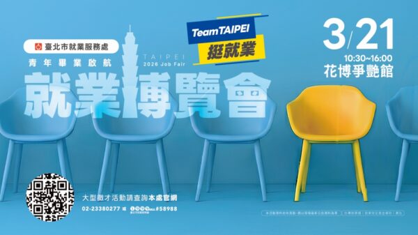 畢業季將至,臺北市政府持續打造友善就業環境。臺北市就業服務處將於3月21日(星期六)在圓山花博公園爭艷館舉辦「青年畢業啟航」就業博覽會,邀集188家企業參與,釋出8,459個工作機會,其中約56%職缺不需工作經驗,為應屆畢業生與青年求職者提供多元選擇。