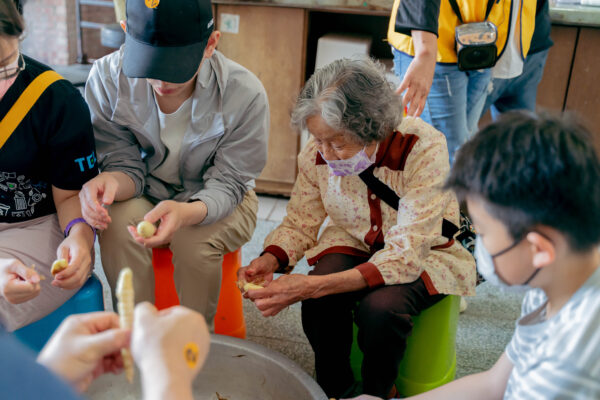 志工們與地方長輩一同加工葛鬱金,彰顯溫暖的世代傳承與共融。(圖 / Tokyo Electron Taiwan)