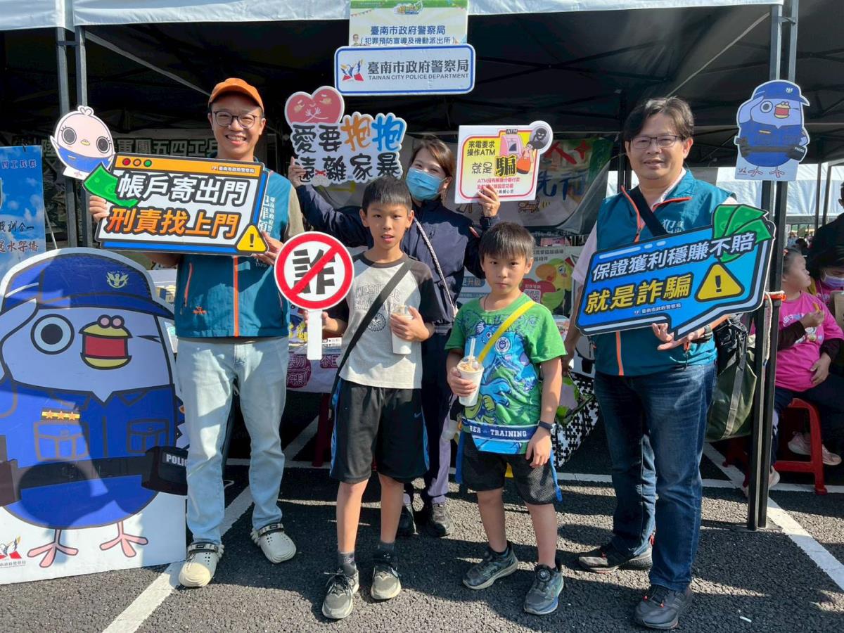 記者黃冠源/台南報導 2025年已近尾聲,為迎接聖誕佳節及新的一年到來,臺南市各地接續辦理各項大型活動,12月6日(週六)臺南市政府農業局在新化果菜市場舉辦番薯盛宴「2025甘藷豐年祭」活動,同日臺南市立圖書館亦舉辦「2025 新.臺灣派對」聖誕點燈系列活動,吸引大批人潮,節慶氣氛濃厚,活動熱鬧滾滾。臺南市政府警察局結合當日2場次活動,主動出擊走入群眾,於現場園遊會市集設置宣導攤位進行反詐騙宣導,透過有獎徵答、提供宣導品之趣味互動方式吸引民眾關注,將新興及常見詐騙手法、最新防詐資訊等直接傳遞予現場民眾,並相互交流防詐小撇步,積極擴大防詐宣導觸及範圍,避免民眾受害。