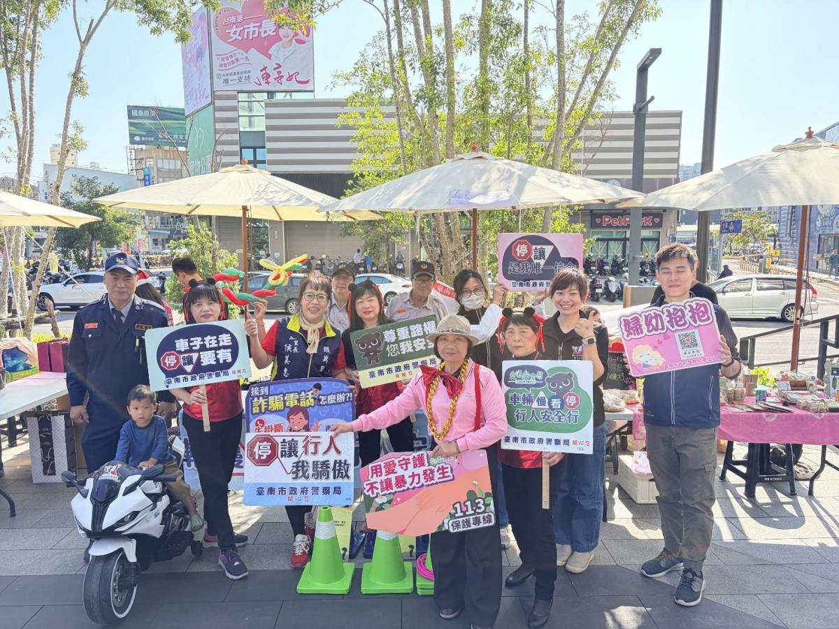 記者黃冠源/台南報導 為提升孩童用路安全並強化社區交通安全文化,南警五分局與北區區公所於(14)日在新光三越小北門店廣場共同舉辦「北區聖誕送暖-社區營造X多元文化嘉年華」活動。現場以寓教於樂的方式推廣路口安全與交通守法觀念,吸引眾多親子家庭到場參與。