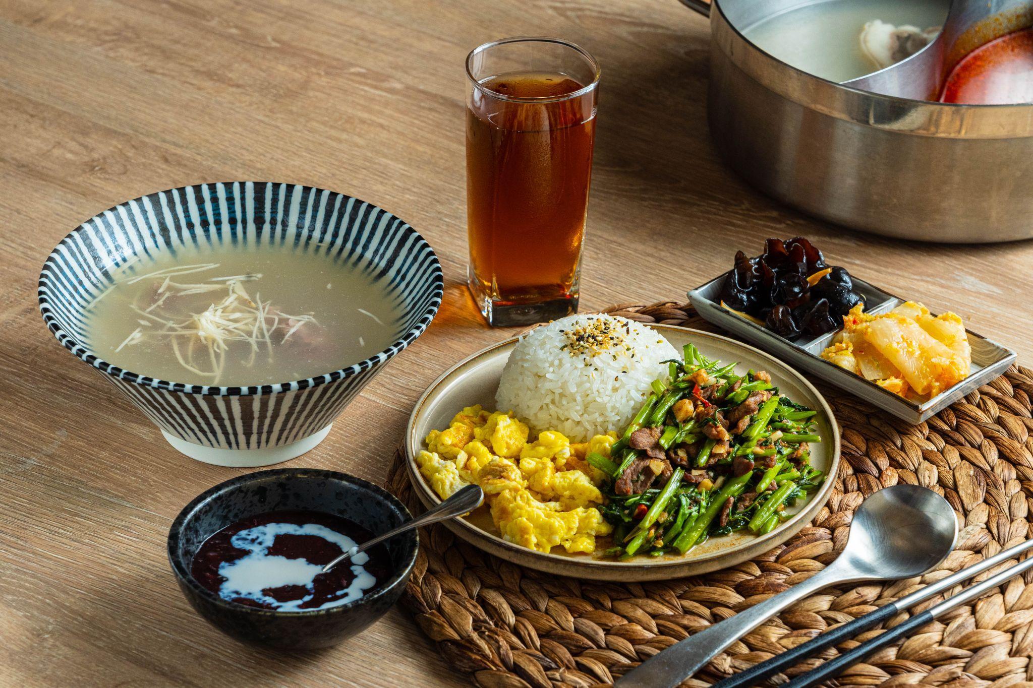 湯頭方面,品牌堅持每日現熬,以帶皮溫體羊骨、蔬果與大骨慢火熬煮數小時,羊脂香氣與蔬果清甜呈現清澈卻濃郁的滋味,層次分明。搭配特製醬油或主廚特調豆瓣醬,或甘甜或辛辣,風味自由變化。店內還提供多款小配料,手切蔬菜盤與嚴選手工火鍋料,無一不是為了襯托主角肉品的純粹風味。