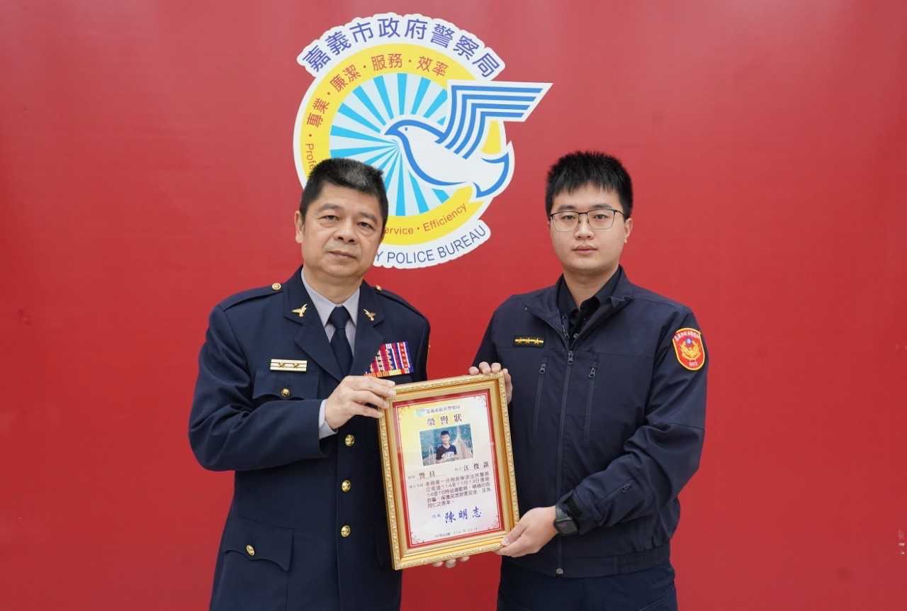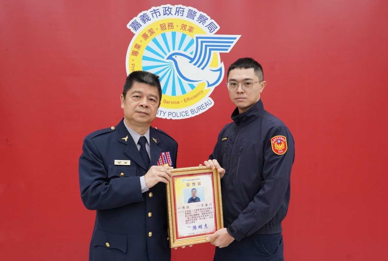 嘉義市政府警察局利用114年12月月報時,表揚員警好人好事優良事蹟,計有積極防阻詐騙案件、主動關懷協助平安返家、協助傷病緊急送醫治療等10件事蹟,獲獎員警有第一分局巡佐羅勝鴻等10人及第二分局警員李嘉昌等10人,共計20位績優員警,由局長陳明志頒發員警好人好事榮譽獎狀,表彰同仁熱心為民服務的傑出表現。