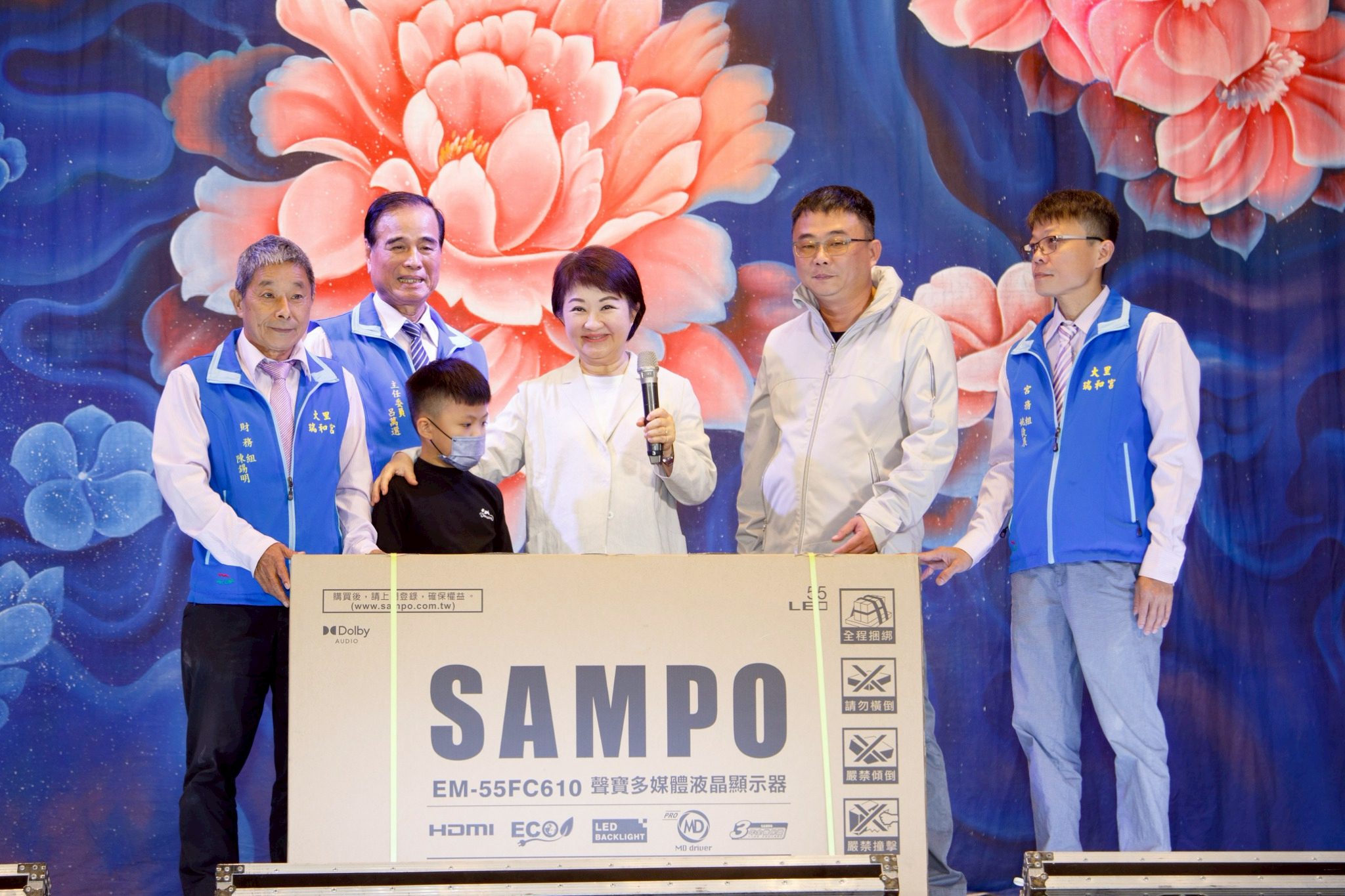 2025台中市傳統藝術巡演廣受好評,台中市政府文化局延續活動熱潮,今(23)晚邀請「明華園日字戲劇團」於大里瑞和宮廟埕帶來經典戲碼《青陽大大爺》,另類詮釋「路遙知馬力」的趣味故事。市長盧秀燕特別到場,她感謝明華園日字團與瑞和宮共同推廣傳統藝術、傳承在地宗教文化,並致贈「慈光普照」匾額,肯定廟方長年護佑地方、投入公益的卓越貢獻。