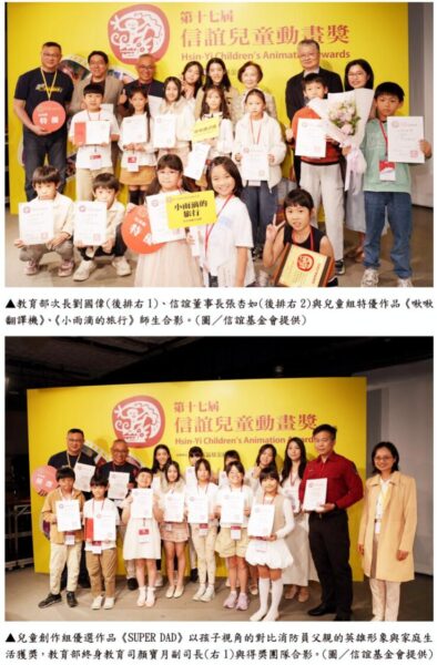 今年台灣孩子作品主題多元,涵蓋家庭關係、同儕互動、環境議題與文化認同,透過動畫描繪校園生活與奇幻冒險,也融入原住民與客家文化,展現對在地文化與自然環境的關懷;也出現運用AI 生成的創作,展現新世代對科技的直覺運用;信誼指出,在新工具快速發展下,更需回到教育本質,讓創作成為孩子思考與表達的途徑。