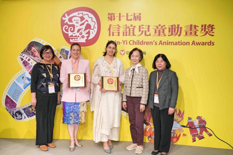 ▲第17屆「信誼兒童動畫獎」揭曉!文化部影視產業局副局長呂美莉(右1)與信誼董事長張杏如(右2)、營運長廖瑞文(左1),一同與專業組得獎國家代表印度台北協會助理會長倪諦(中)、 匈牙利貿易辦事處代表于靜(左2)合影。(圖/信誼基金會提供)