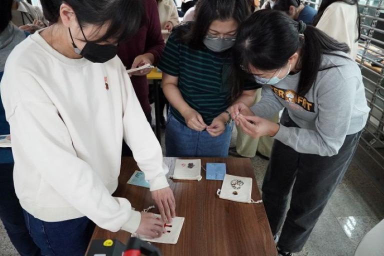 ▲師生動手創作,體驗高教深耕計畫帶來的創意與互動。 (圖/記者蔣彤雲攝)