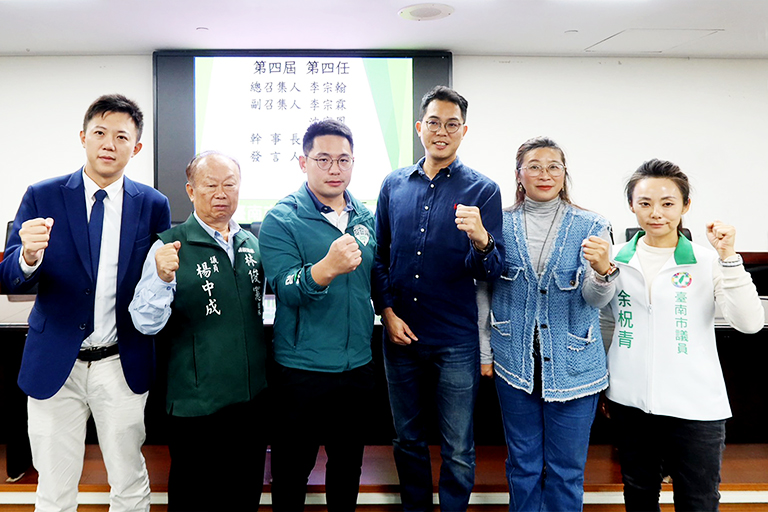 台南市議會民進黨黨團於今(18)日舉辦第4屆第4任黨團三長交接,台南市議員李宗翰擔任新任總召,二位副總召為李宗霖議員、沈家鳳議員,幹事長為楊中成議員,發言人由鄭佳欣議員、余柷青議員、王宣貿議員擔任。
