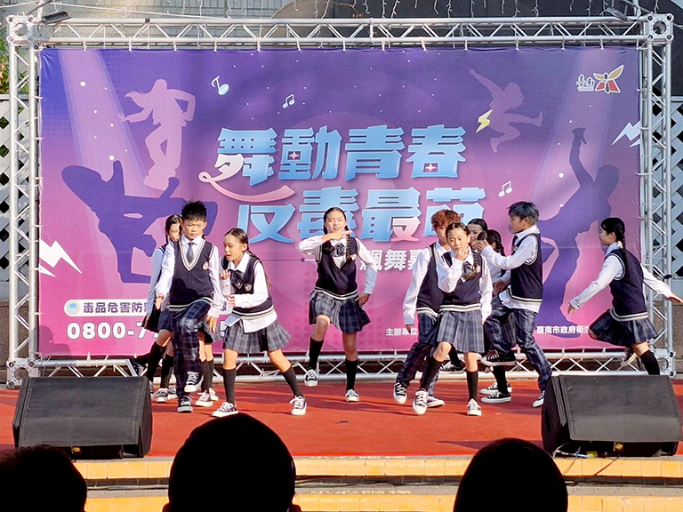 臺南市政府毒品危害防制中心(以下簡稱毒防中心)為強化學生拒毒觀念與推廣正向休閒活動,與遠東百貨股份有限公司台南成功分公司攜手合作,於114年11月15日(星期六)舉辦「舞動青春 反毒最萌」校際聯合反毒嘉年華,現場有600人參加,活動集結臺南市學生校外生活輔導會、臺南市政府教育局、臺南市政府警察局、財團法人勵馨社會福利事業基金會、南部地區人才招募中心、8家高中及國中小等學校共同參與。現場舞者盡情揮灑青春魅力,熱絡氣氛感染在場民眾,大家不由自主伴隨《青春舞YOUNG》的輕快節奏,一齊舞動嗨翻全場,展現青春正能量與拒毒決心。