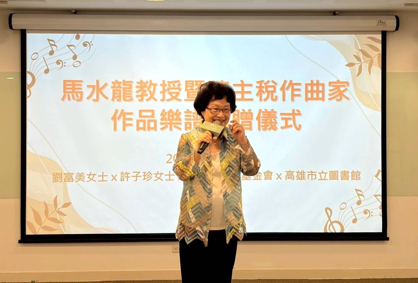 高雄市立圖書館於12月7日在總館舉行「馬水龍教授暨陳主稅作曲家作品樂譜捐贈儀式」,正式接收兩項重要音樂典藏。鋼琴家劉富美捐贈其丈夫、作曲家陳主稅先生的作品樂譜;同時,在馬水龍教授夫人許子珍女士及財團法人邱再興文教基金會協助下,高市圖獲贈作曲大師馬水龍的完整樂譜全集。高雄市政府文化局局長王文翠相當重視此項珍貴捐贈,特別出席儀式,肯定兩位作曲家對臺灣音樂發展的深遠貢獻。