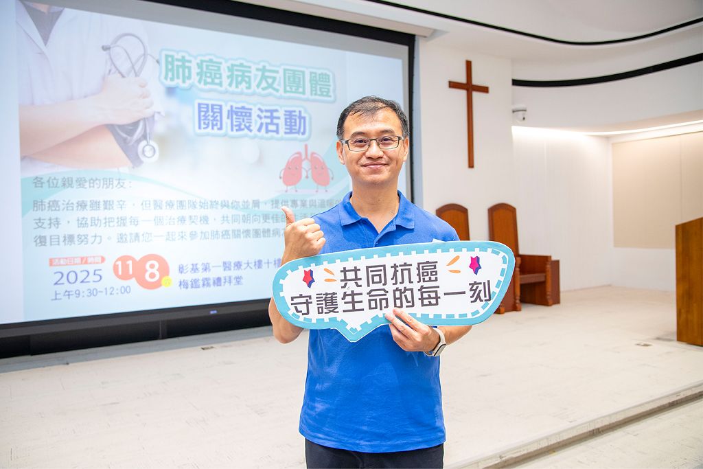 「去年7月25日,我在彰化基督教醫院動了肺腺癌手術,那天剛好是凱米颱風來襲。有人防颱,我在手術台上對抗人生的另一場風暴。」滿一年後,林先生語帶幽默地回顧,這一天不只是手術日,更是他的「重生日」。這段分享出現在彰化基督教醫院舉辦的肺癌病友會現場。活動邀集四位病友分享抗癌歷程,並由醫師團隊以「精準三環—決戰早期肺癌」與「一張基因報告改變命運」兩場專題,介紹肺癌早期診斷與個人化治療的最新進展。